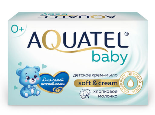 Натуральное детское крем-мыло AQUATEL Baby хлопковое молочко создано для самой нежной кожи. Уникальная формула натуральных компонентов, детского крема и хлопкового молочка обеспечит мягкое очищение нежной коже малыша. Крем-мыло гипоаллергенно, клинически протестировано. Содержит в составе крем и экстракт хлопка. Обладает мягкой рецептурой и натуральной основой, не содержит красителей. Предназначено для малышей с самого рождения.