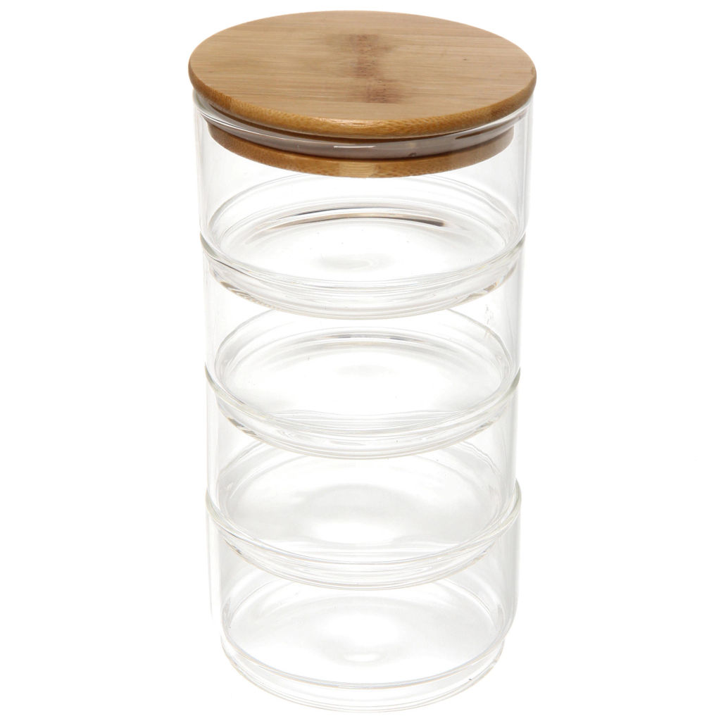 Банка для продуктов стеклянная "Хай-Тек" в наборе 4*400мл с бамбуковой крышкой 11*6см