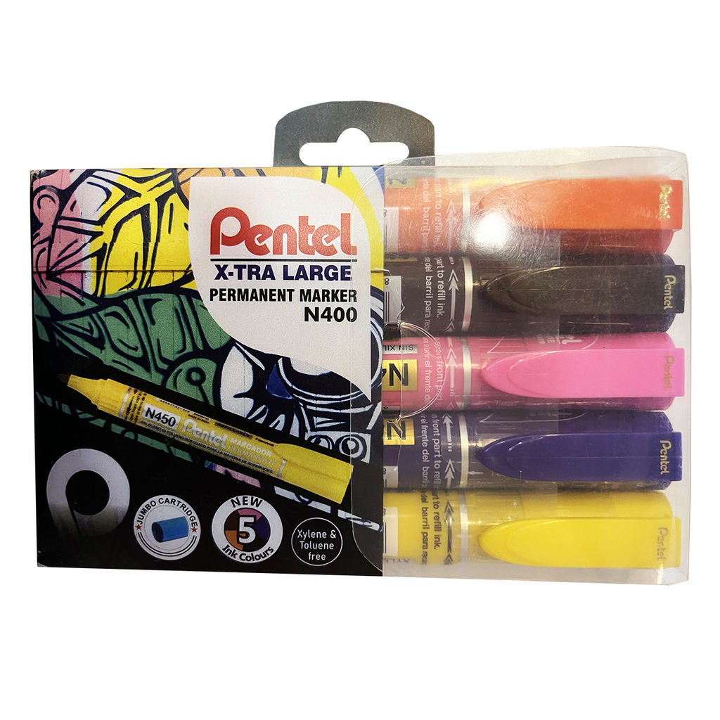 "Pentel" Набор перманентных маркеров X-TRA LARGE bullet point 5 цв. N450-5M