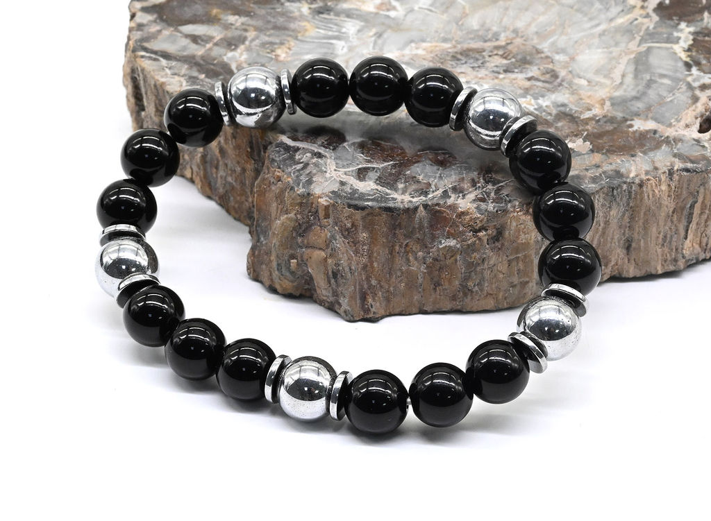 Размер бусин: агат черный шарик 10мм, терагерц шарик 10мм.­
