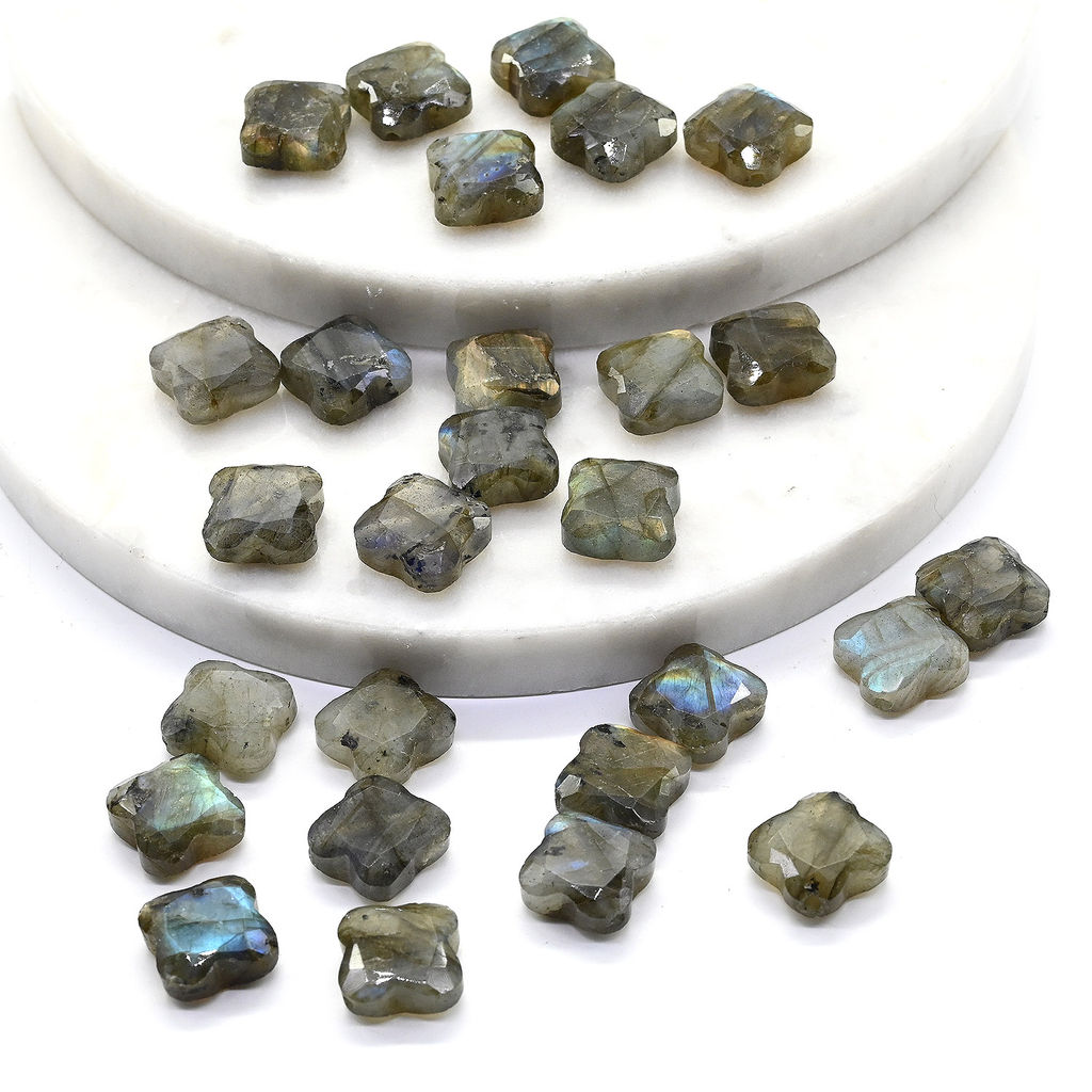 • Бусина для рукоделия Клевер граненый 13*13мм из лабрадора, 1 шт Радуга камня