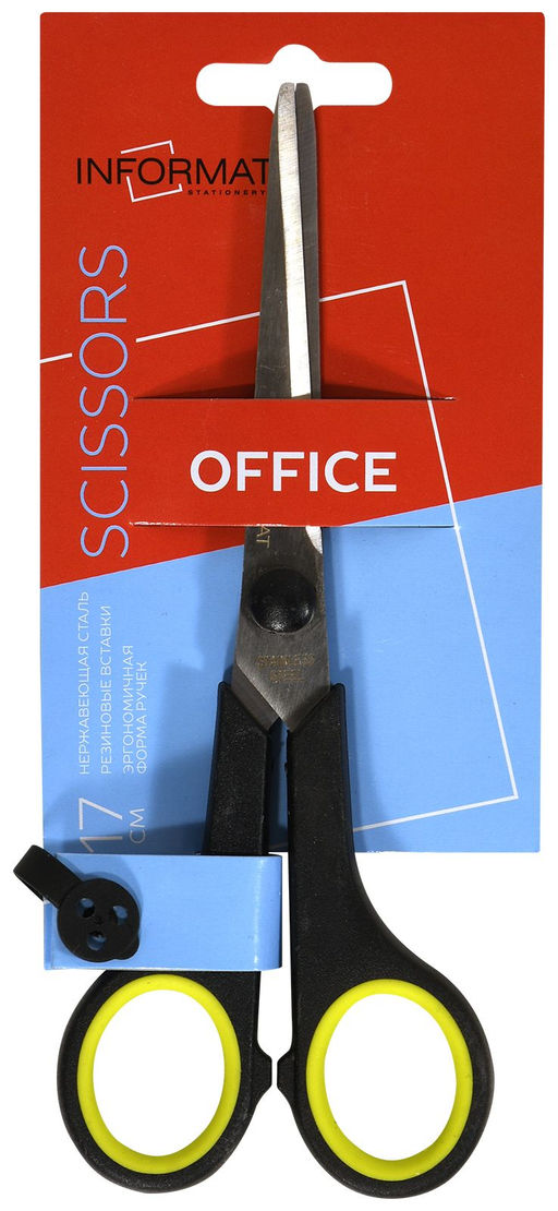 • Ножницы INFORMAT 170 мм черно-желтые, ручки пластиковые с резиновыми вставками