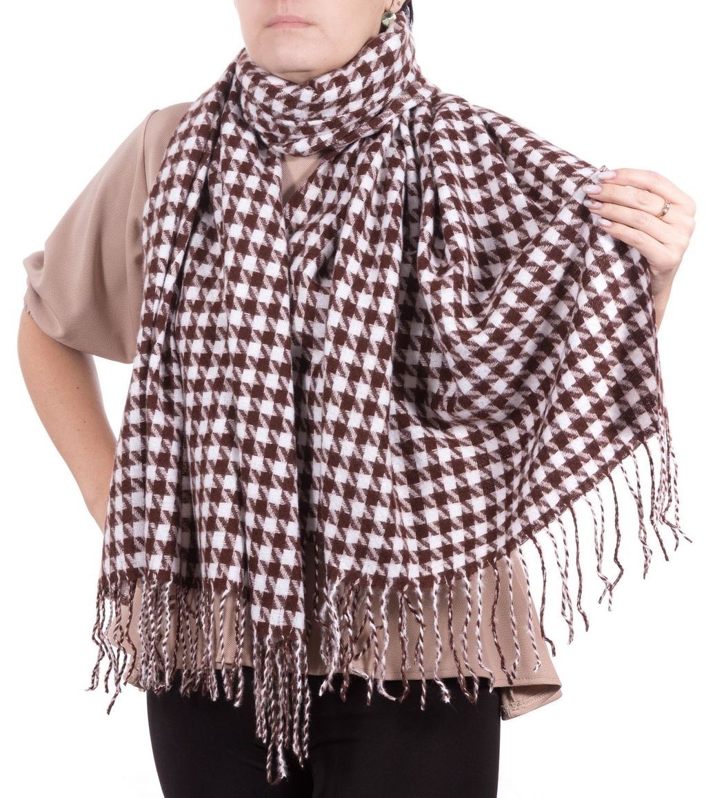 Палантин с кистями, гусиная лапка MAGROM, коричневый, 190 х 75 см, из вискозы и шерсти