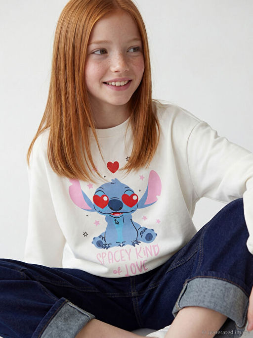 Stitch Bask?l? K?z ?ocuk Sweatshirt