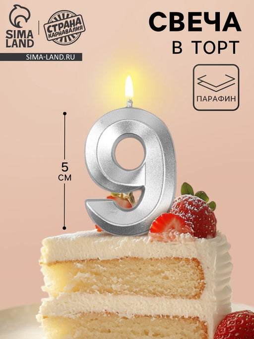 Для кого: Унисекс. В наборе, шт.: 1. Высота свечи, см: 5. Высота свечи без шпажки, см: 5. Форма свечи: Цифры. Цифра: 9. Бесплатная доставка: Да.