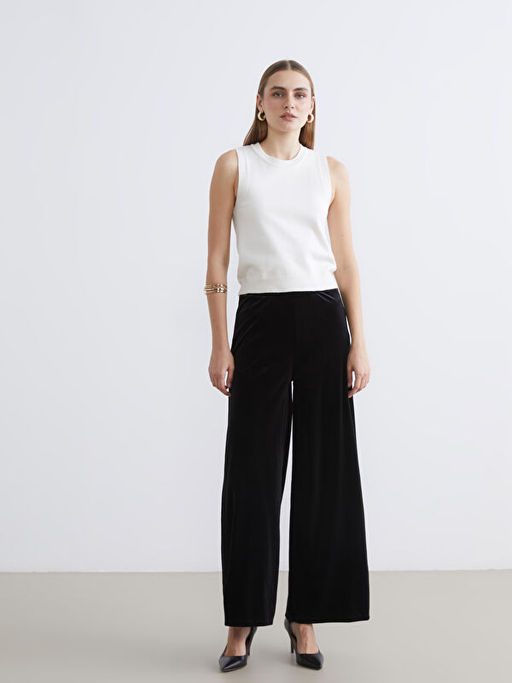 Beli Lastikli Geni? Pa?a Kad?n Kadife Pantolon