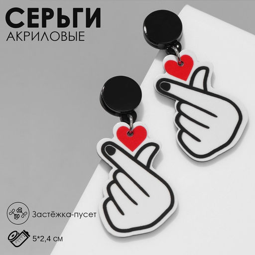• Серьги акриловые «Сердечко» пальчики, цветные в серебре