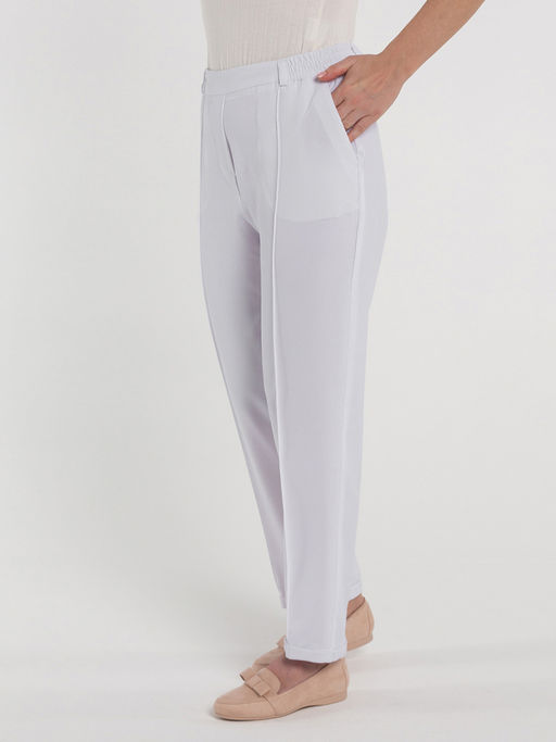Описание товара Комфортные повседневные брюки из легкой костюмной ткани (вишер, турецкий лен), со стрелками, укороченные, слегка зауженного силуэта. Пояс на естественном уровне талии, со шлевками, открытый срез пояса с изнаночной стороны обработан окантовкой из отделочной ткани. По переду брюк боковые карманы с отрезным бочком, имитация гульфика. Стрелки на брюках заутюжены и отстрочены на 0,1 см, что гарантирует легкость в уходе за изделием. В пояс спинки вставлена резинка, которая позволяет талии менять свои объемы на пару размеров. На правой половинке спинки прорезной карман-обманка с листочкой. Низ брюк обработан швом в подгибку с открытым срезом, застрочен на манжет. Ткань неприхотлива в использовании, не мнется, при этом "дышит". А брюки отлично смотрятся как с кедами, так и сболее классической обувью. Длина по шаговому шву для р.48 около 71 см, ширина низа брючины около 19 см. Рост модели 170 см, обхват бедер 104 см, обхватталии 77 см, размер брюк 48. -- Характеристики -- Вес (грамм): 295 Состав: Вискоза-80% Полиэстер-20% Модель №: БР124 Модель брюк: зауженные Сезон: Лето Артикул: 44 Базовая единица: шт Основной рисунок: однотонный Характеристики: 44 ШтрихКод: 04660276731525 Тип посадки: средняя Основной цвет: белый Размер модели на фото: 48 Параметры модели на фото (рост-обхват груди-обхват бедер): 170-96-104, размер 48 Материал: костюмная ткань Бренд: HitWear Размер одежды на модели: 48 Ширина низа брючин: 19 Тип карманов: с отрезным бочком Коллекция: Лето 2025 Фактура материала: гладкий Назначение: повседневное Вид застежки: без застежки Длина по внутреннему шву: 71 Пол: женский Вид одежды: Брюки Технический регламент: ТР ТС 017/2011 "О безопасности продукции легкой промышленности" Страна: Россия Размер: 44 Элемент каталога: Брюки БР124 арт.12423, белый 27541
