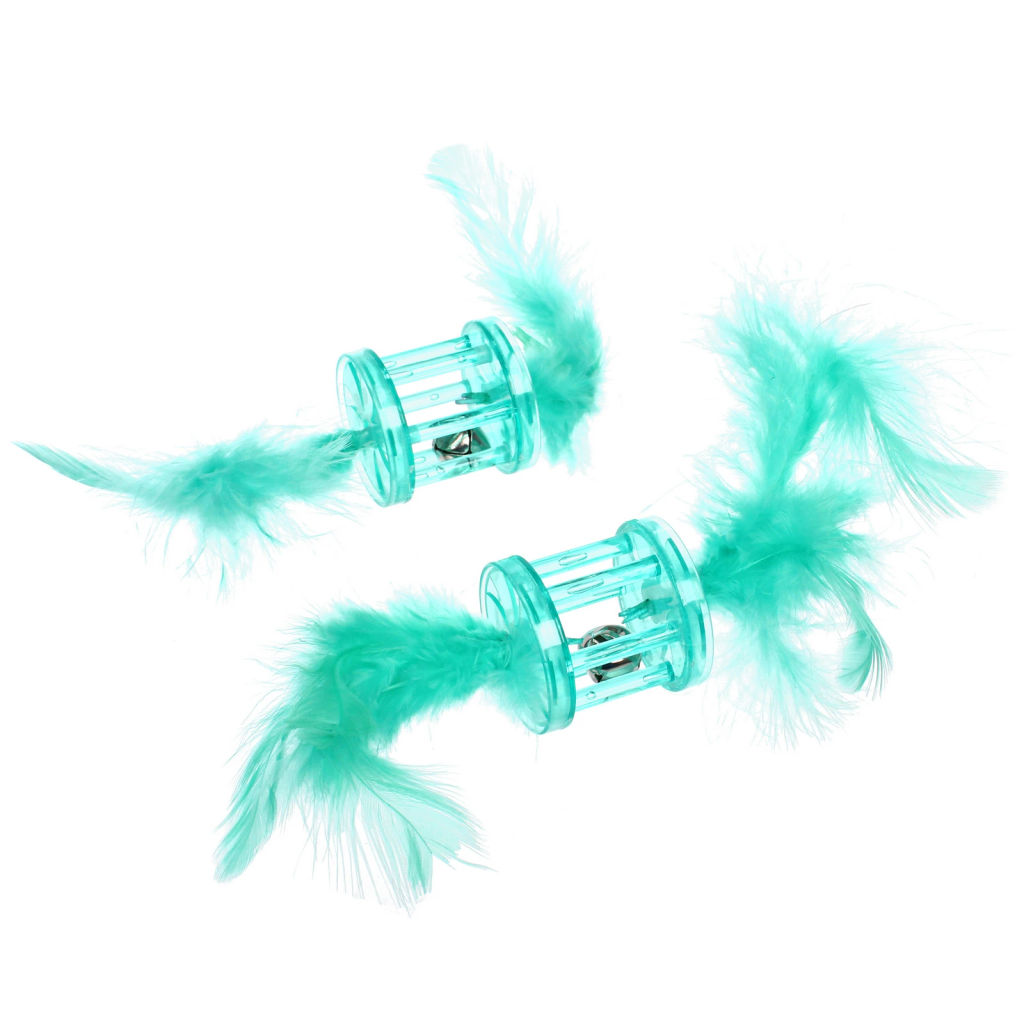 Цена за 6 шт. Игрушка для кошек с бубенчиком в наборе 2шт "ИГРУЛИК", с перышками, цвет мятный, 4см