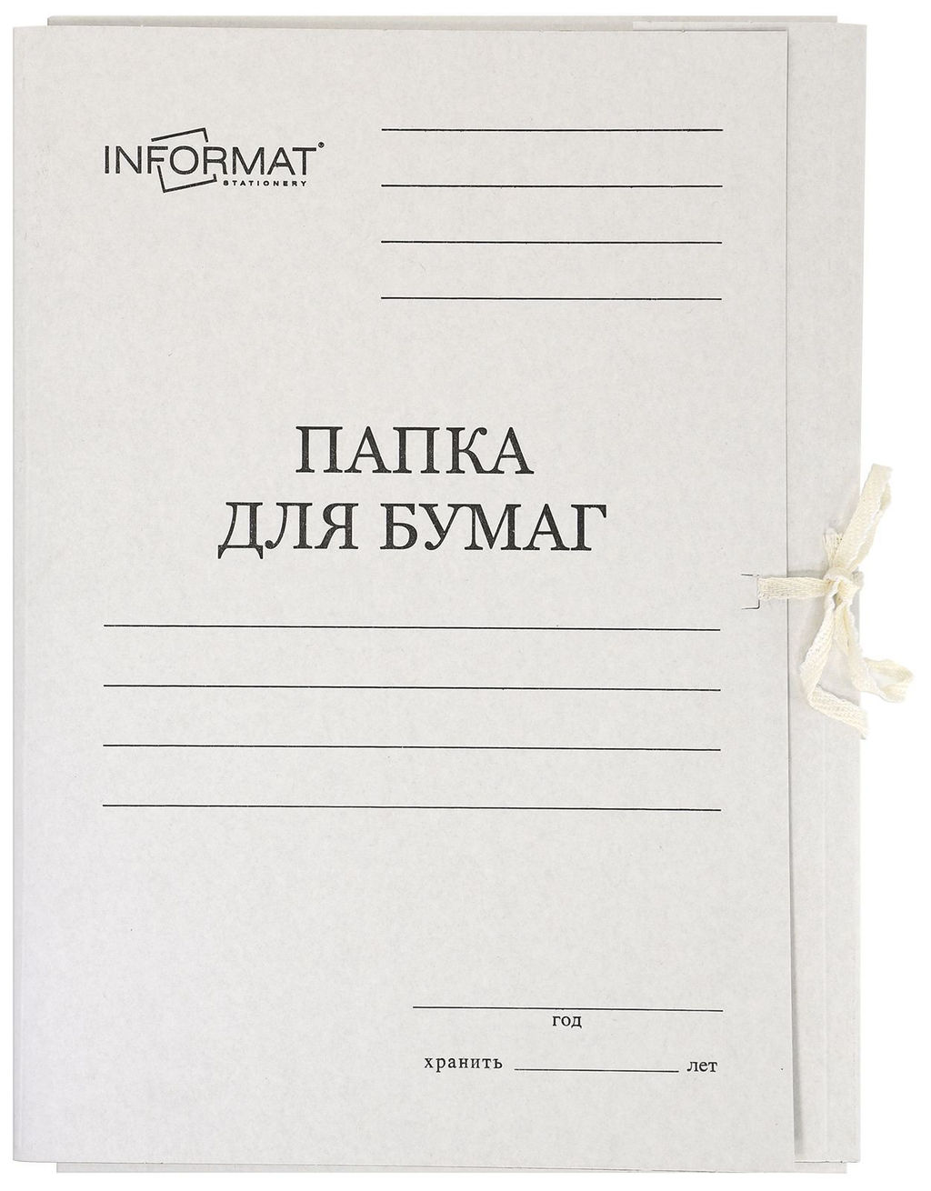 • Цена за 5 шт. Папка с завязками INFORMAT А4, немелованный картон 400 г/м2, белый