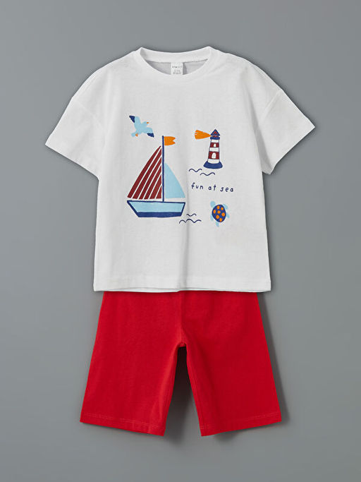 Bisiklet Yaka Bask?l? K?sa Kollu Erkek ?ocuk ?ortlu Pijama Tak?m?
