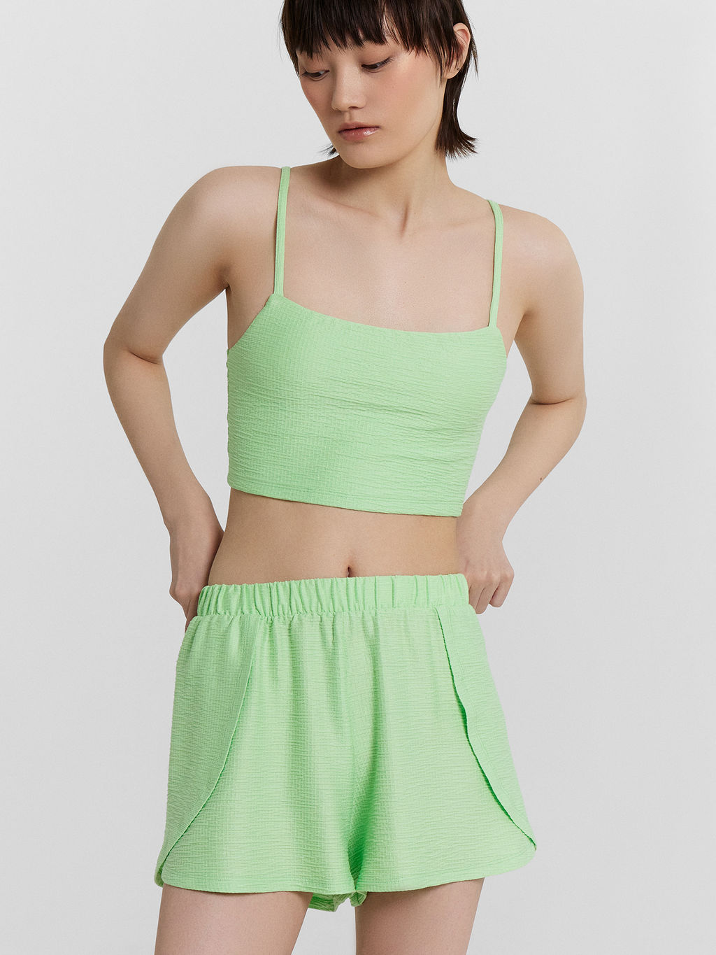 Стильный женский комплект из нежной и лёгкой вискозы это идеальный выбор для тех, кто ценит комфорт и изысканность. Топ прилегающего силуэта длиной до талии, с тонкими бретелями и комфортной подкладкой из хлопковой кулирки, обеспечивает мягкость и приятные ощущения на коже, а также элегантно подчеркивает женственность образа. Мини-шорты свободного силуэта, дополненные эластичной тесьмой в поясе, дарят свободу движений и идеально сидят на фигуре. Такой комплект создан для сна, домашнего уюта и расслабленного отдыха, сочетая в себе практичность и стиль. Рекомендуем для тех, кто стремится к гармонии и комфорту в своем повседневном гардеробе!­