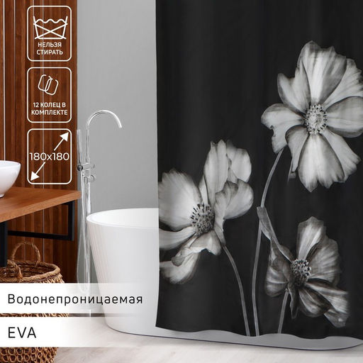 • Штора для ванны Доляна «Герберы», 180×180 см, EVA