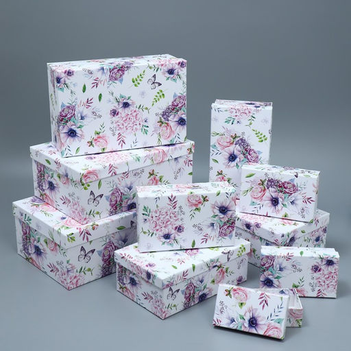 Набор коробок 10 в 1, упаковка подарочная, Цветы, 12?7?4 - 32.5?20?12.5 см