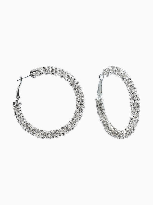 • Серьги-кольца со стразами "Россыпь" d=5,5см, цвет белый в серебре