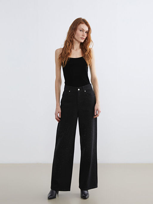 • Wideleg Ta?l? Kad?n Jean Pantolon