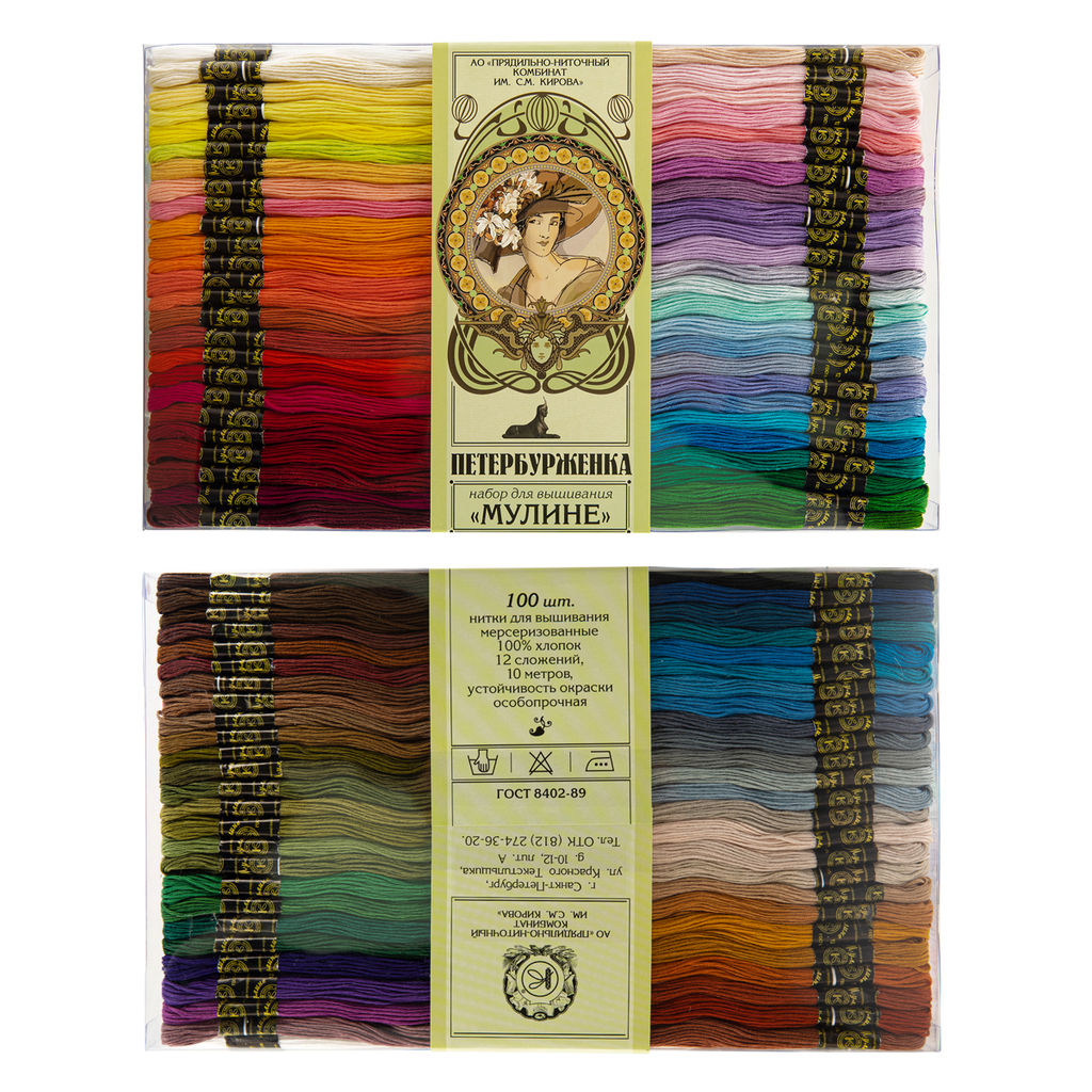 Нитки для вышивания ПНК им. Кирова мулине 100% хлопок 100 цв. x 10 м ассорти Петербурженка
