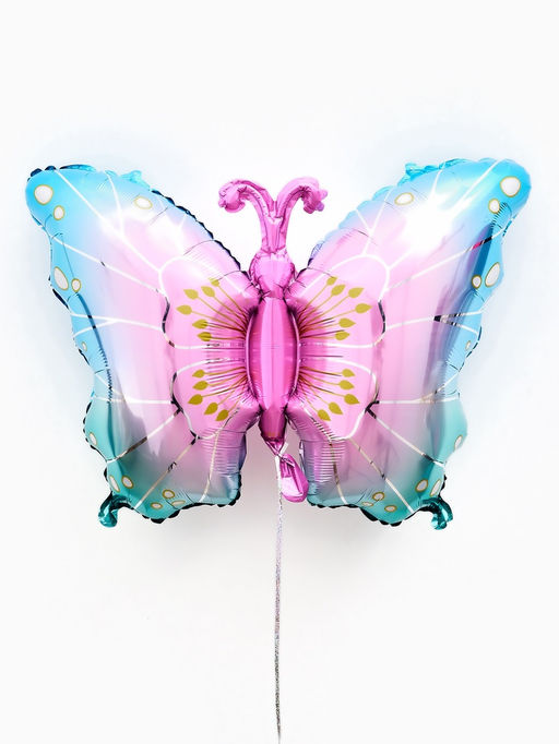 Цена за 2 шт. Воздушный шар фольгированный 32" «Бабочка» цвет голубой металлик