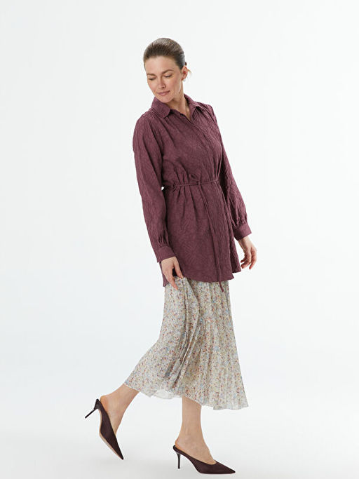 Beli Lastikli ?i?ekli Kad?n Pileli Etek
