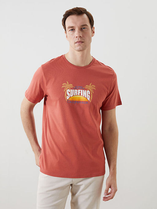 Bisiklet Yaka K?sa Kollu Bask?l? Penye Erkek Ti??rt