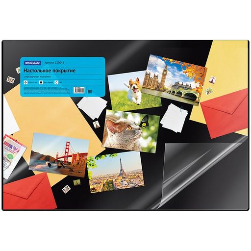 • Настольное покрытие 450*650мм черное с прозр. карманом (OfficeSpace, 239043)