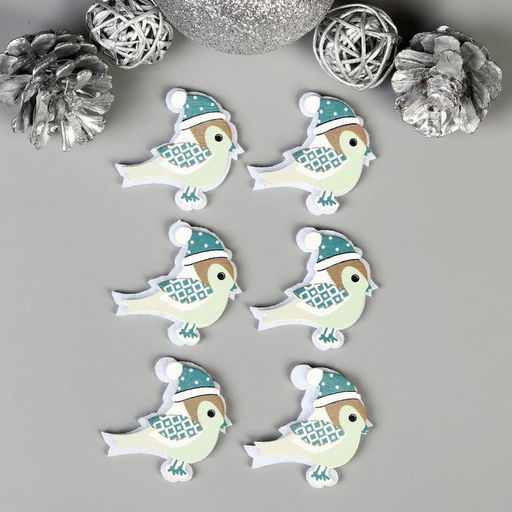 Декор для творчества дерево, войлок «Воробушек в шапочке» набор 6 шт. 4.2×4.2 см