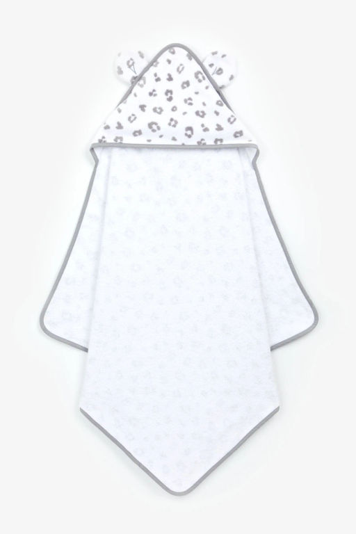 new 08/25 - Полотенце с капюшоном предназначен для использования после водных процедур. Выполнено в дизайне "Леопард" с объёмными ушками на капюшоне.