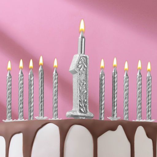 Свечи для торта «Цифра 1 + классические», серебро, 10 см