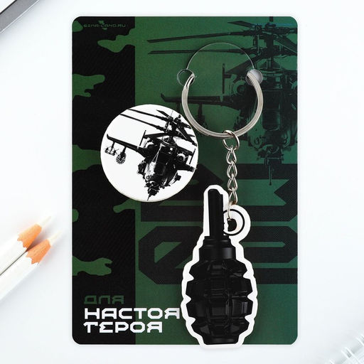 • Цена за 2 шт. Значок и брелок на 23 Февраля «Для настоящего героя», подарочный набор : 2 предмета