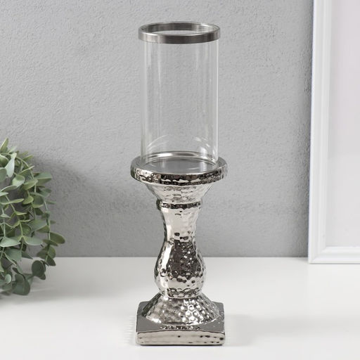 Подсвечник на 1 свечу «Монти», керамика, стекло, d=7.5 см, серебро, 9×9×31.5 см
