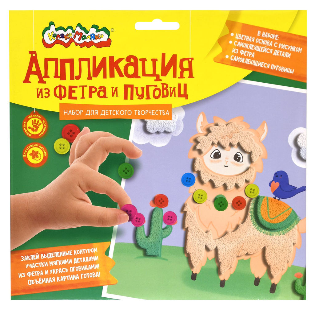 Аппликация из фетра и пуговиц Каляка-Маляка ЛАМА 20х20 см 3+