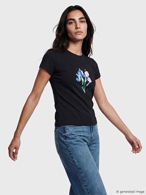 Bisiklet Yaka ?i?ek Bask?l? Kad?n Ti??rt
