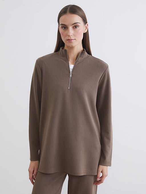 • Dik Yaka ?izgili Oversize Kad?n Ti??rt