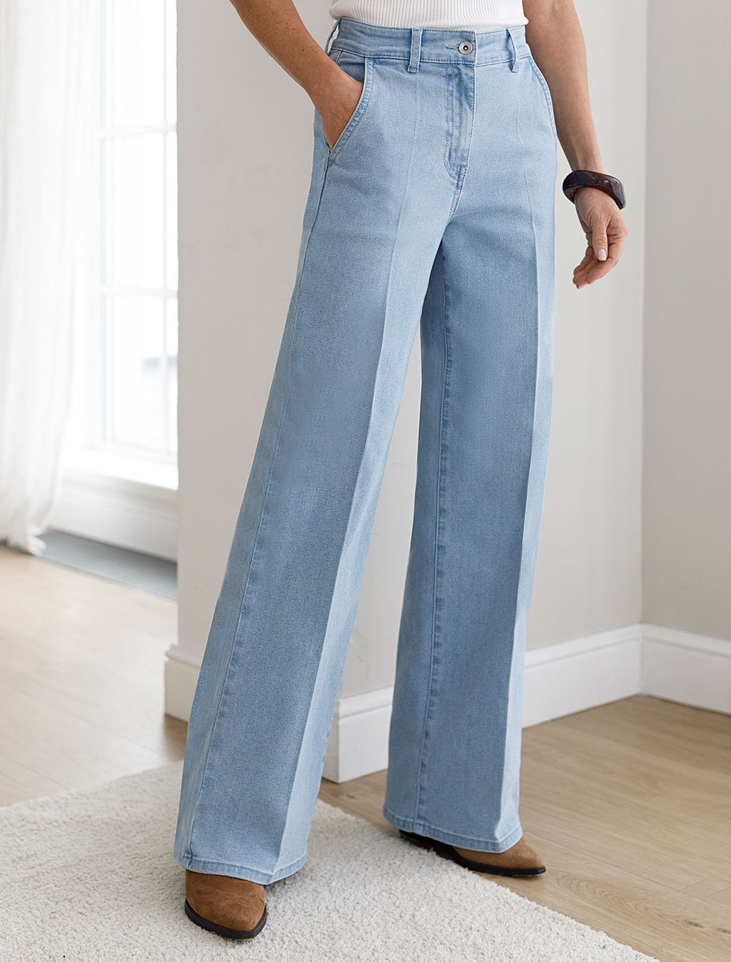 Прямые джинсы голубого цвета из эластичного денима плотностью 12,6 OZ отличный выбор для тех, кто ценит стиль и комфорт в повседневной жизни. При производстве джинсов применена технология вареные швы, которая основана на локальном вымывании красителя из плотных участков ткани сгибов и швов за счет механического воздействия во время промышленной стирки. Стоун вошинг - энзимная стирка с камнями. Камни воздействуют на ткань, выбивая краску на швах, создавая контрастные мраморные потертости и мягкость. Джинсы прямого фасона визуально вытягивают ноги, делая образ более изящным и аккуратным. Классический крой подходит на разные типы фигур и размеры, в том числе большие. За счет эластана модель отлично садится по фигуре, подчеркивая ее достоинства и создавая стройный силуэт, материал способствуют идеальной посадке по талии и бедрам, которая сохраняется даже после длительного ношения. Джинсы подходят для разных случаев благодаря универсальному крою и лаконичному дизайну. Они легко комбинируются с разной верхней одеждой, позволяя создавать как повседневные, так и более официальные образы. Выбирая эти джинсы, вы получаете не просто одежду, а уверенность в своем стиле каждый день. -- Характеристики -- Состав: 80%Хлопок 15%ПЭ 5%ПУ Плотность: 12,6 OZ
