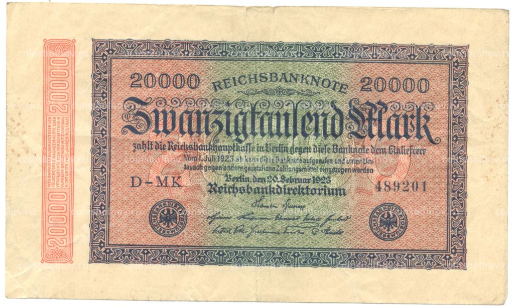• Банкнота 20000 марок 1923 года Германия