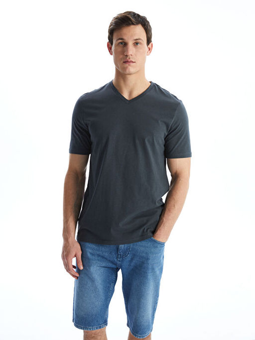 • V Yaka K?sa Kollu Penye Erkek Ti??rt