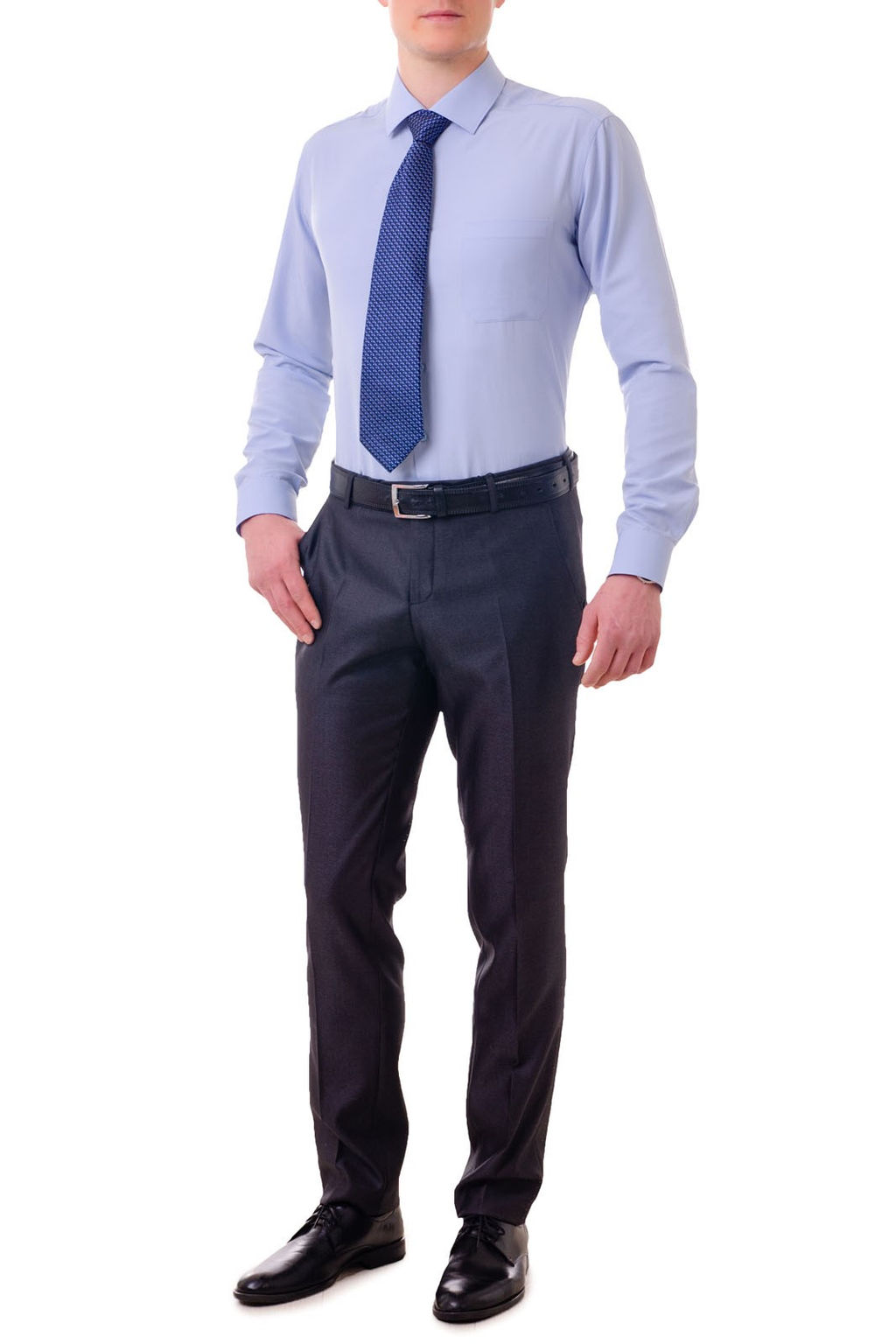 Классическая рубашка прямого кроя темно-голубого цвета с длинным рукавом.
