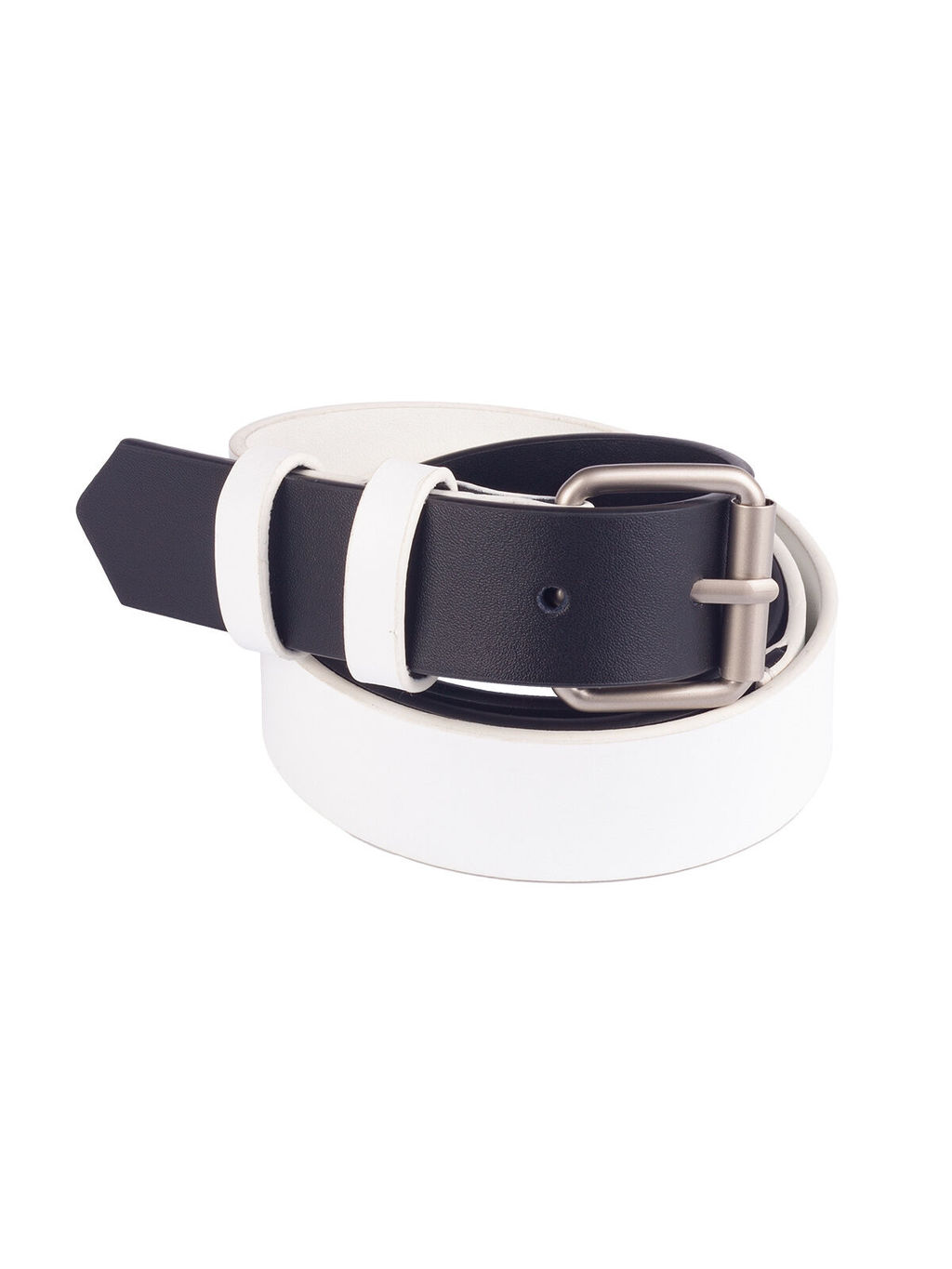 Стильный широкий ремень выполнен из натуральной кожи двух цветов, декорирован пряжкой серебристо-перламутрового цвета. Контрастное сочетание белого и черного цветов, использованное в оформлении, выглядят очень оригинально и подчеркивают незаурядность обладательницы аксессуара. Может отлично комбинироваться с жакетами, рубашками свободного кроя, джинсами, платьями, кардиганами.