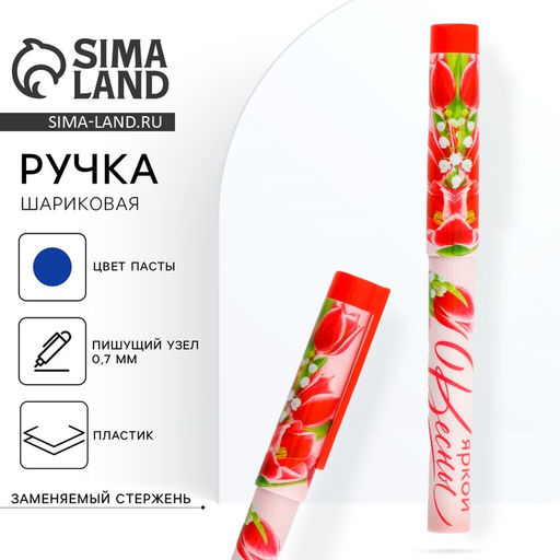 • Цена за 10 шт. Ручка шариковая, синяя паста, 0.7 мм, пластиковый корпус с колпачком Яркой Весны