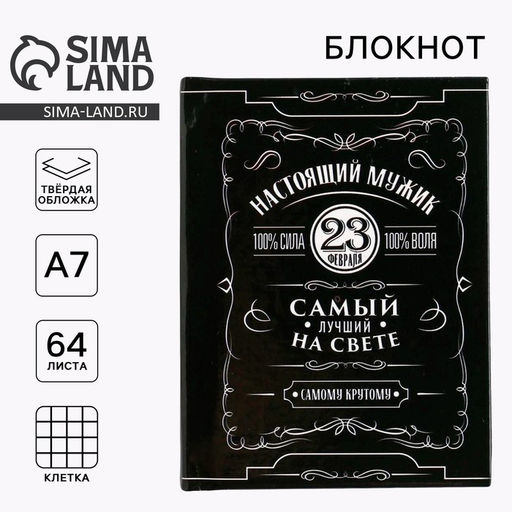 • Блокнот А7, 64 л. в твердой обложке «23 февраля. Настоящий мужик»