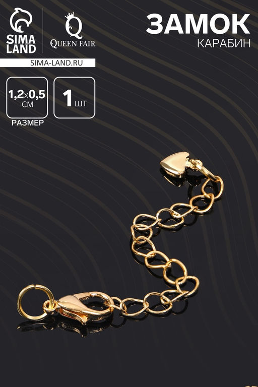 • Цена за 2 шт. Замок карабин родированный 1.2×0.5 см «Сердечко», с удлинителем 5.5 см, цвет золото