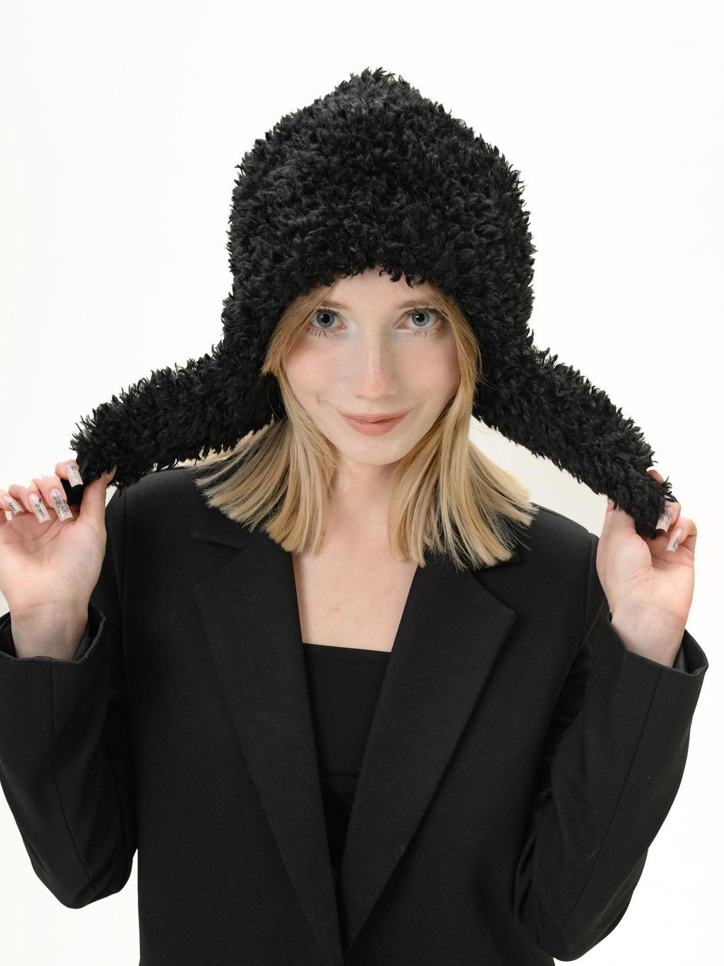 Милый модный головной убор шлем от тм Это Эльф выполнен из искусственного меха барашек с красивым крупным завитком насыщенного черного цвета. Шапка  на хлопковом подкладе. Утепленная модель. Ушки удлиненные без застежки.. Регулятор размера резинка внутри подкладки.