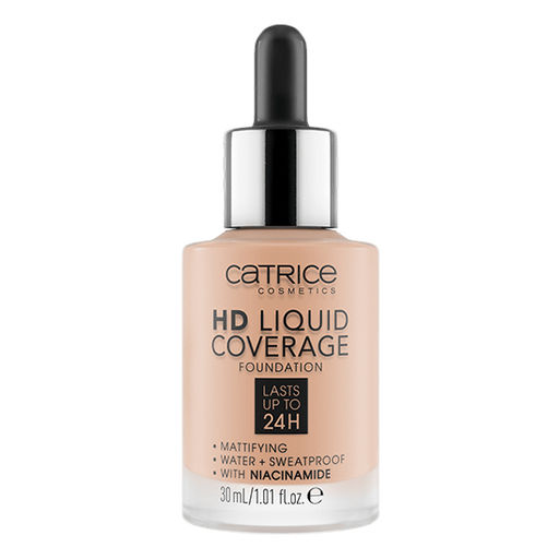 Эффект второй кожи: Жидкая тональная основа HD Liquid Coverage Foundation выглядит как вторая кожа и сохраняет безупречный цвет лица и бархатисто-матовый финиш до 24 часов! Ультралегкая, жидкая текстура с плотным и в то же время естественным покрытием скрывает несовершенства, совершенствует кожу благодаря содержанию ниацинамида и устойчива к воздействию воды и пота. Формула не содержит минерального масла, частиц микропластика и парабенов.
