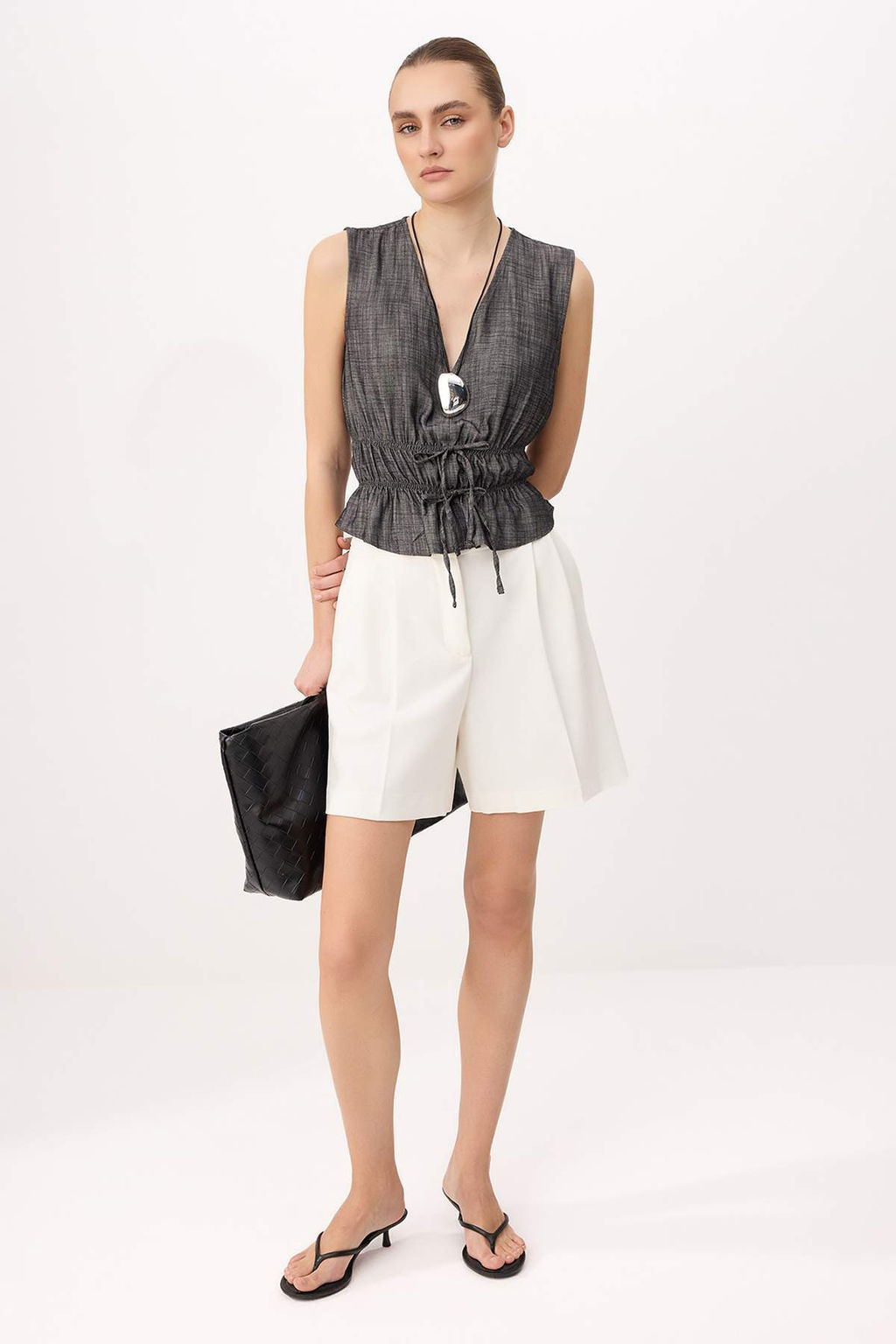 • Lacivert Fiyonk Detayl? V Yaka Dokuma Bluz TWOSS26BZ00417