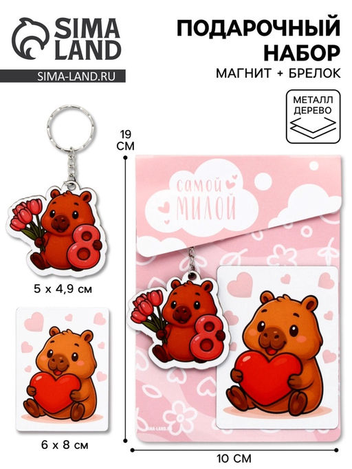 Подарочный набор Самой милой 8 марта, магнит + брелок