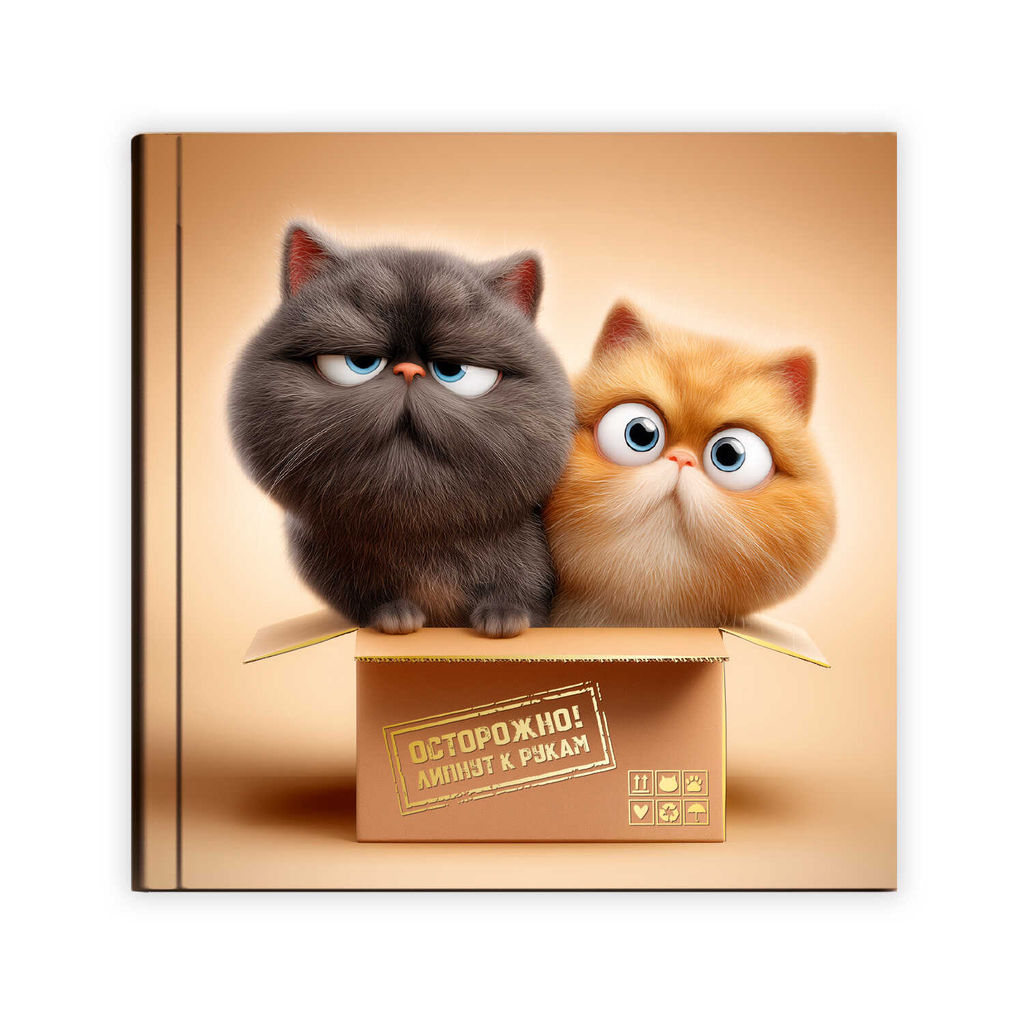 Блокноты, 105х105 мм, 48 л, арт. 74052 КОТЫ В КОРОБКЕ / Блок - белый офсет 65 г/м?, дизайнерский блок(клетка), твёрдый переплёт 7БЦ, тиснение фольгой, глянцевая ламинация/