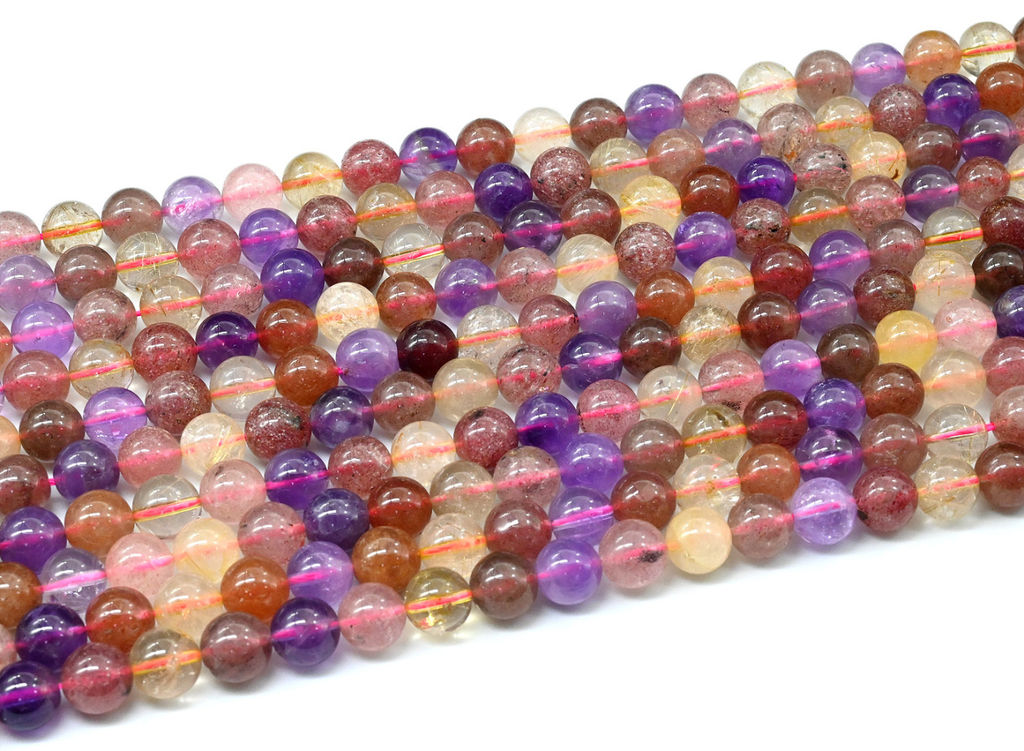 Камни: аметист, агат волосатик "золотой", клубничный кварц.