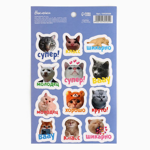 • Цена за 5 шт. Бумажные наклейки оценки «Коты», 11 х 18 см