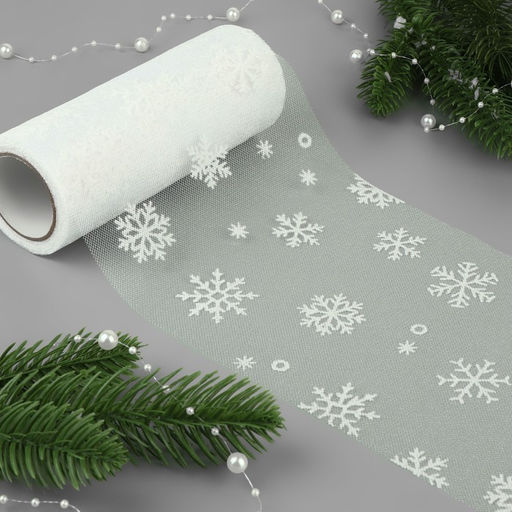 • Фатин со снежинками, 15 см, 9.1±0.5 м, 11±1 г/м², белый №1