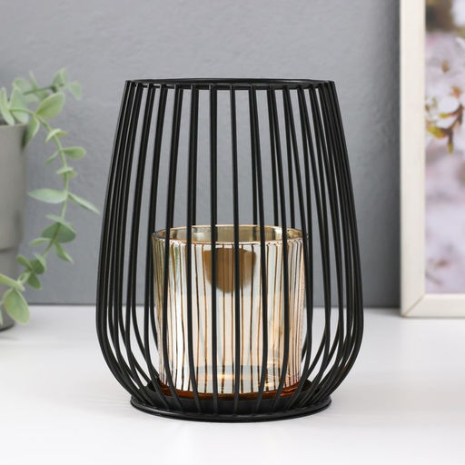 • Подсвечник металл, стекло на 1 свечу "Корзина с закруглёнными углами" чёрный 15х12,5х12,5 см   54140